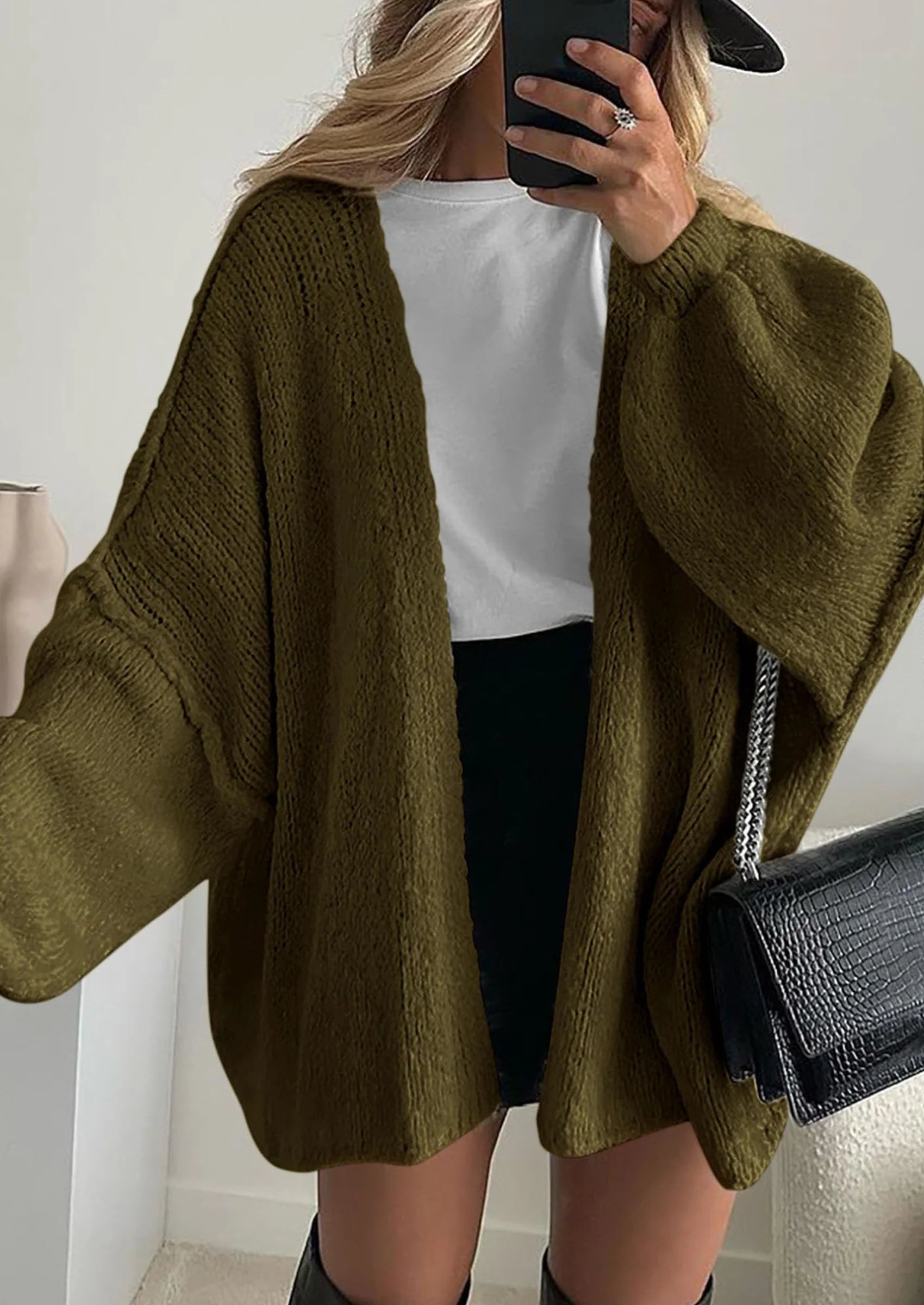 The oversized sleeves, relaxed silhouette, and smooth-touch yarn blend create a look that feels expensive… without the luxury price tag.